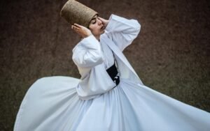 Pendant le rituel du Samâ, la/le Samâzan rentre dans un état profond d’écoute spirituelle qui le relie au Cosmos.
